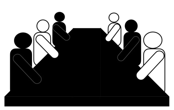上座下座は、進行役や議長がいるかどうかでも変わります。進行役に近い席で、且つ入り口から遠い方が上座となり、下座は一番入り口に近い席となります。