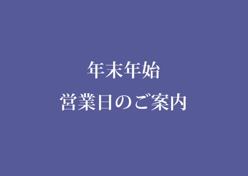 2024年1月4日(木)より、通常営業を開始いたします。その間のお問い合わせにつきましては、お問い合わせフォームよりご連絡くださいますよう、お願い申し上げます。