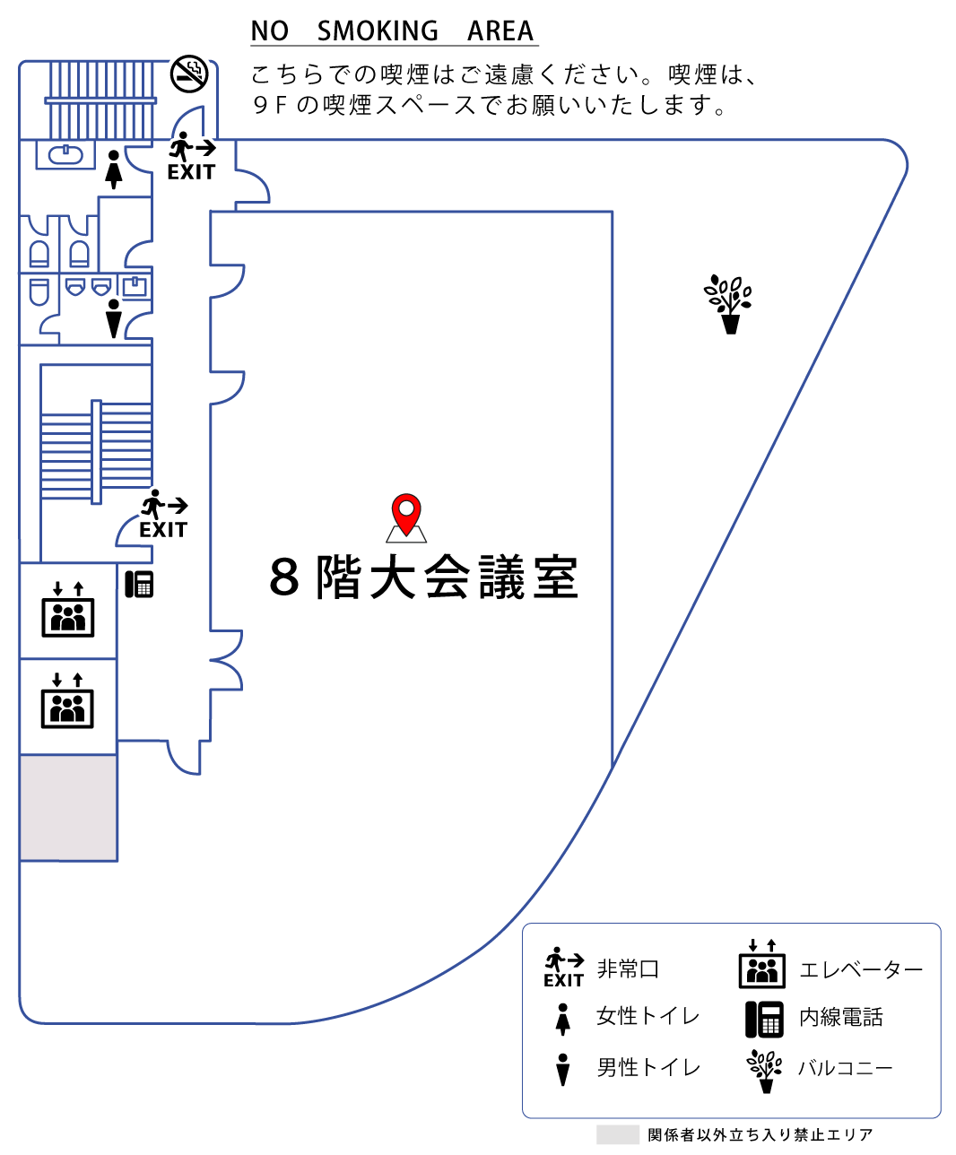 - ご利用後は電気・エアコンの電源をお切りいただきご退室ください。ご退室の際は、「各階エレベーター横の内線電話」または「1F事務所」までご連絡をお願いします。