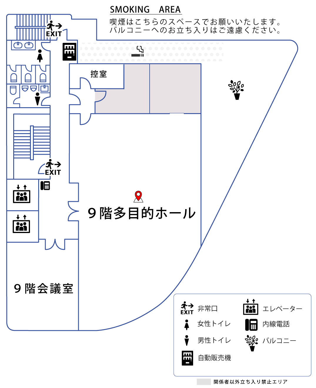 - ご利用後は電気・エアコンの電源をお切りいただきご退室ください。ご退室の際は、「各階エレベーター横の内線電話」または「1F事務所」までご連絡をお願いします。